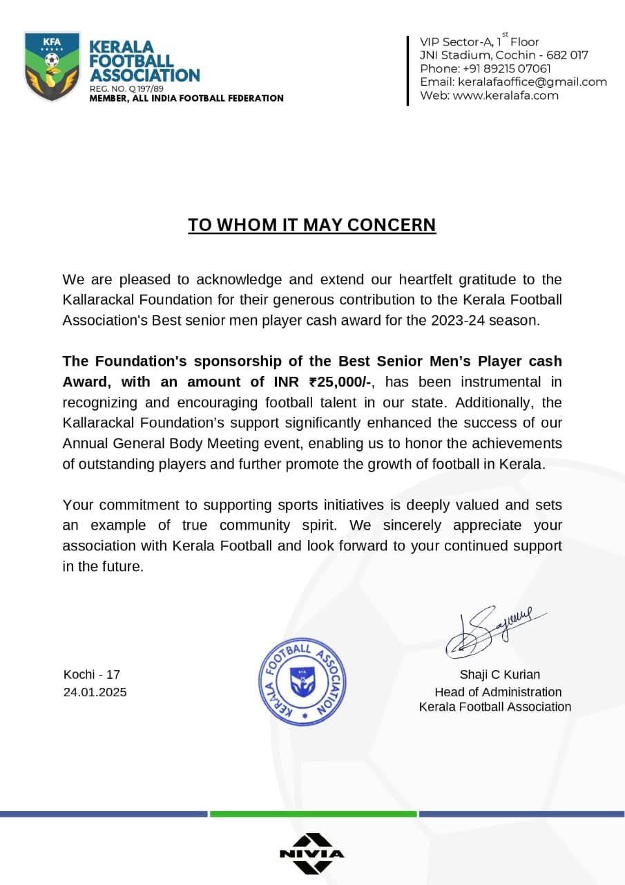 Kallarackal Foundation aims to provide top-notch football training programs for young players in Kerala, helping them reach their full potential.